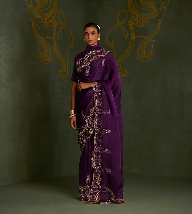 Purple Gajji Silk Festive Embroidered Saree