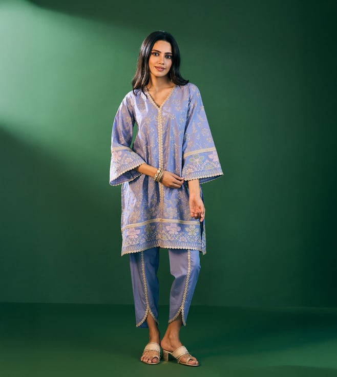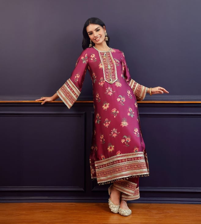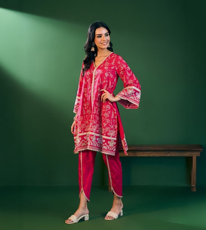 Pink Velvet Chikankari Solid Women's 2 PC Long Kurta Set