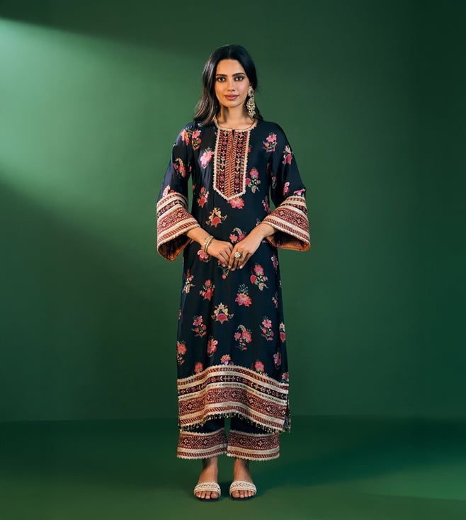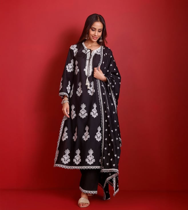 Black Rumi Chikankari Velvet Straight Kurta Set