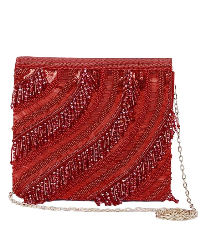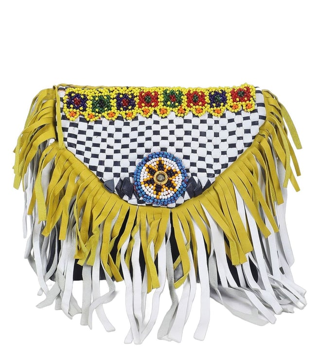 Multicolour Fringey Glam Handcrafted Embellished Leather Cross Body Bag