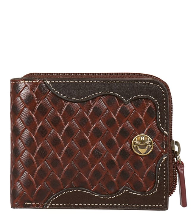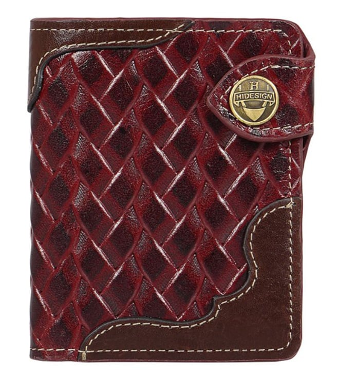 Maroon PISCO W Woven Small Leather Bi-Fold Wallet