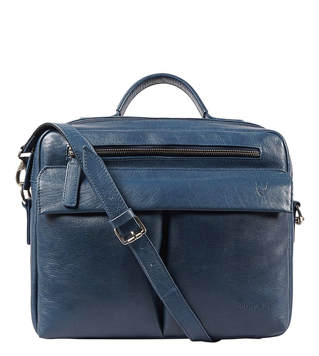 Blue MEZCAL 02 Textured Medium Leather Brief Case