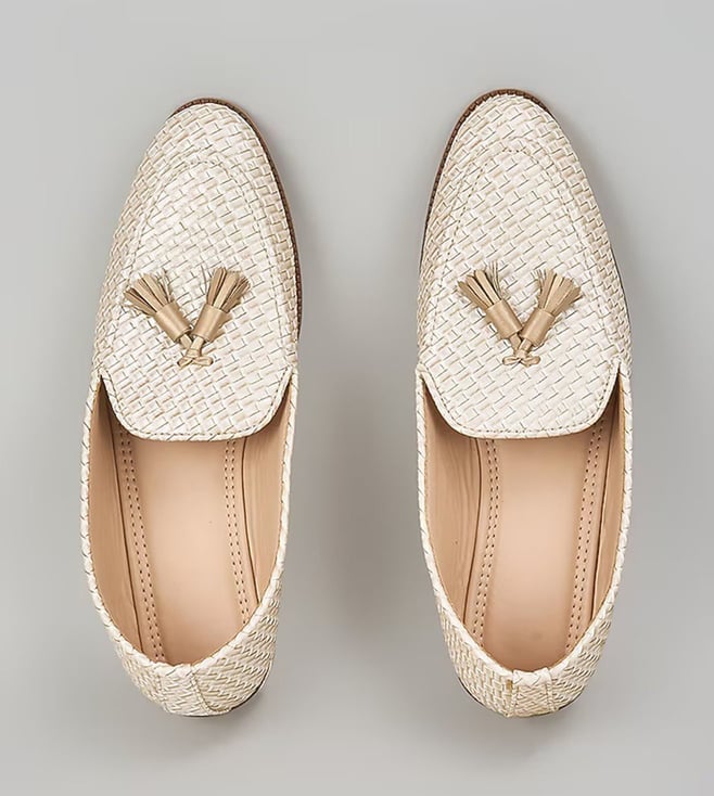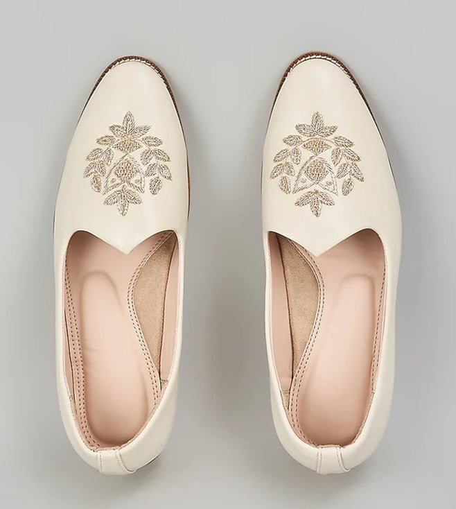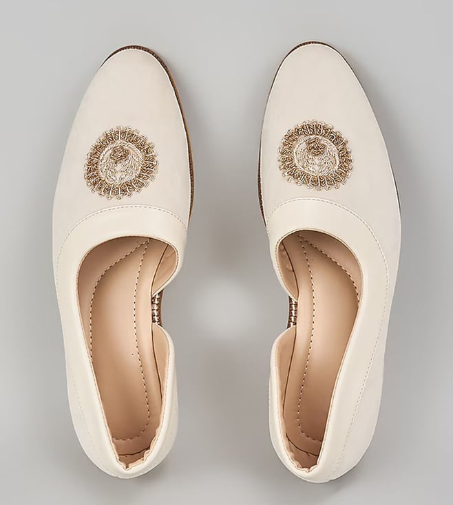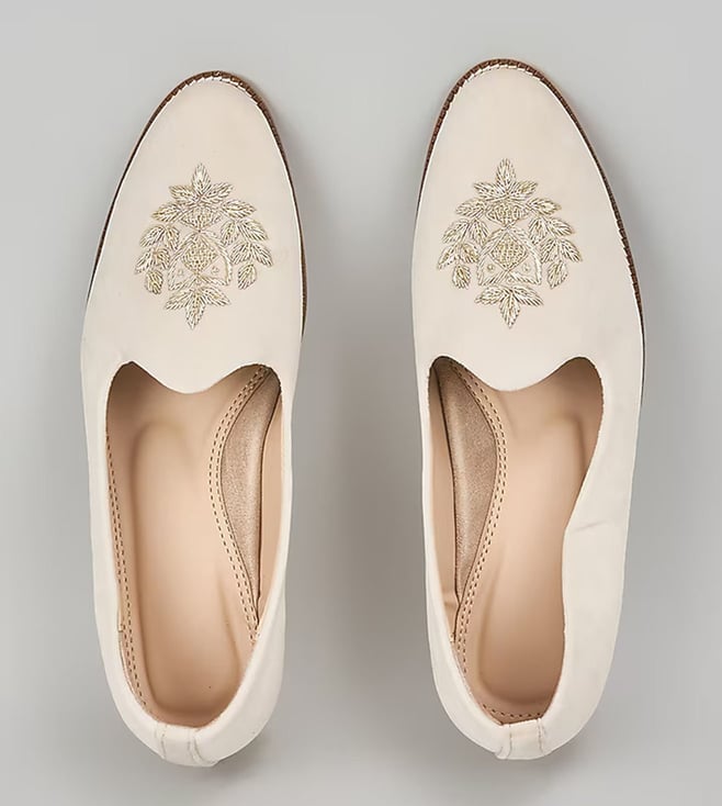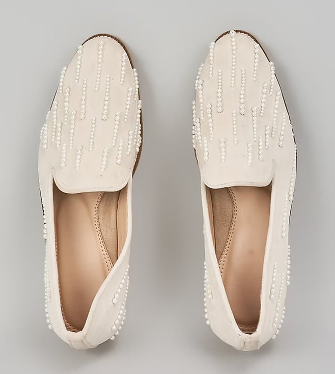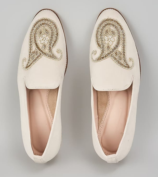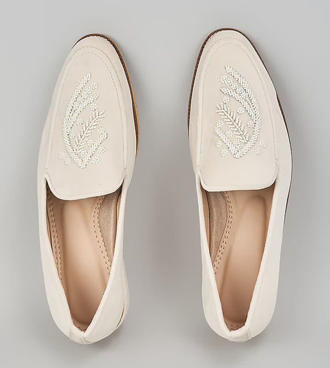 Off White Embroidered Loafers