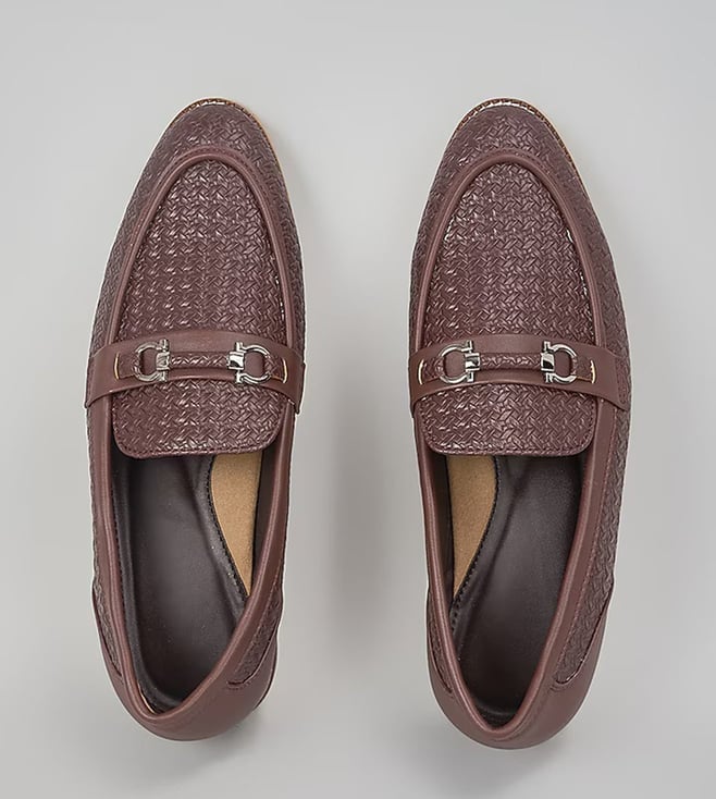 Brown Buckled Herringbone Shoes