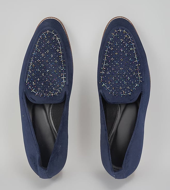 Navy Blue Embroidered Loafers