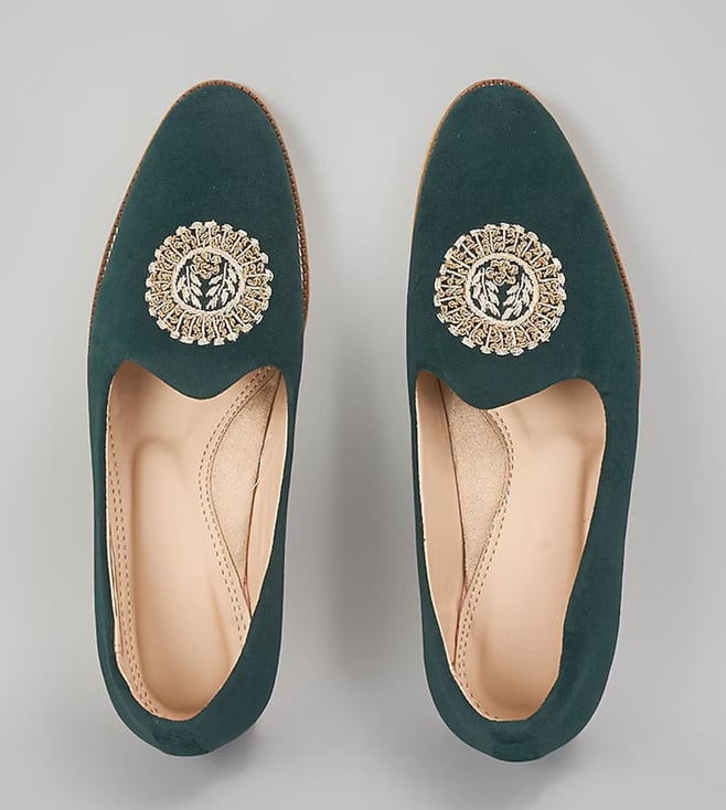 Emerald Green Embroidered Loafers