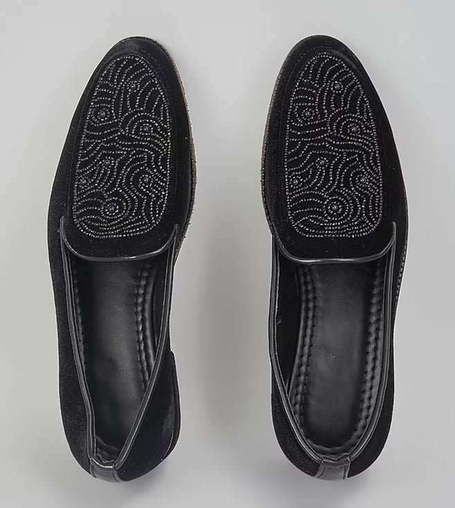 Black Self Design Embroidered Loafers