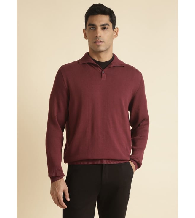 Art of Leisure Burgundy Men's Full Sleeve Polo Sweater