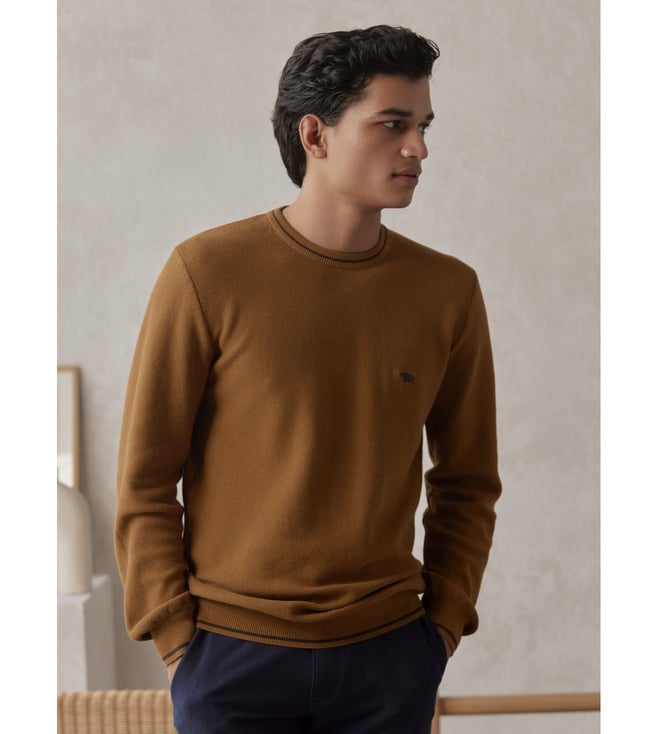 Art of Leisure Structure Brown Men's Full Sleeve Polo Sweater
