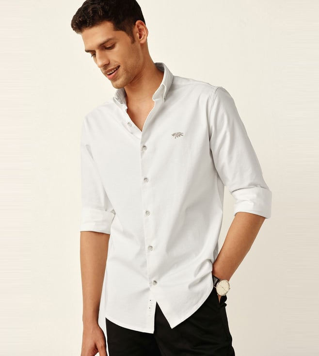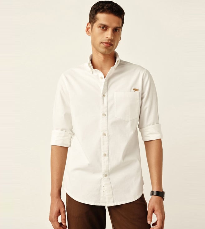 Off White Woven Design Regular Fit Oxford Shirt