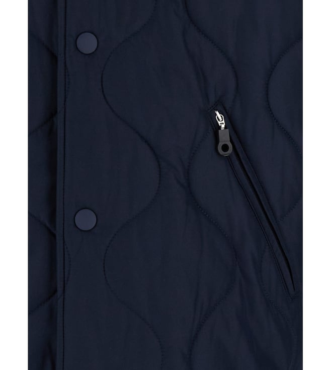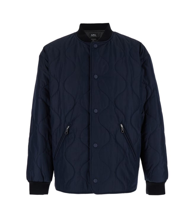 Elevate your style with the A.P.C. Navy Quilted Regular Fit Quilted Jacket. Bomber collar long sleeves with cuffs front snap button closure at the front two front zip pockets ribbed trim blue quilted fabric regular fit. Products purchased from Darveys are supported exclusively by the warranty/exchange policies of Darveys and its partner boutiques. Brand owners and their channel partners are not responsible for exchange/warranty services for items purchased through Darveys.