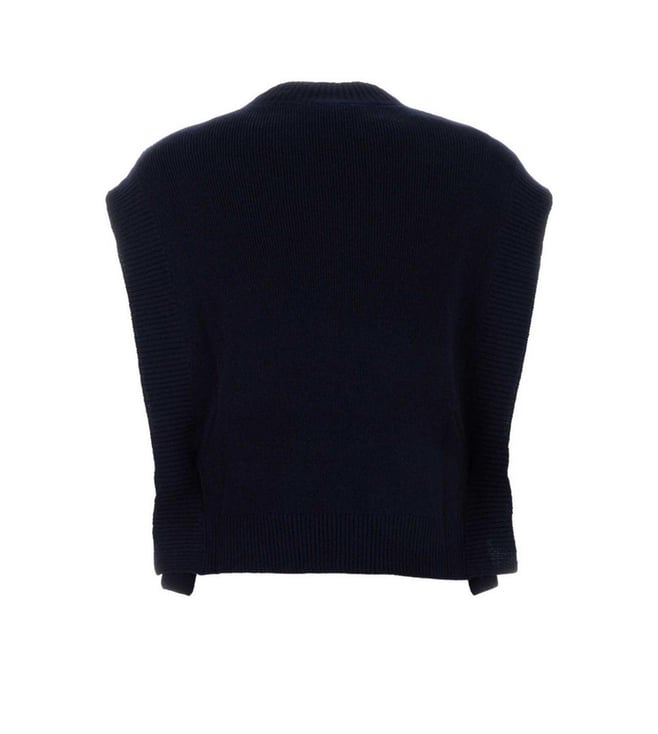 The A.P.C. Navy Blue Wool Mathilde Vest is a sophisticated blend of elegance and modernity, crafted for the discerning woman. Its deep navy hue exudes timeless charm, while the subtle pattern adds a touch of intrigue. Made from 100% wool, the exterior promises warmth and comfort, enveloping you in luxury. The vest features a sleek closure, ensuring a seamless fit that flatters the silhouette. Perfect for layering, it effortlessly transitions from day to night, making it a versatile addition to any wardrobe.