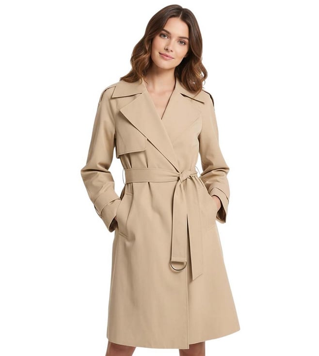 Brown Polyester Blend Printed Patrizia Belted Coat