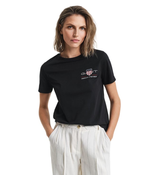 Black Cotton Regular Fit Printed T-Shirt
