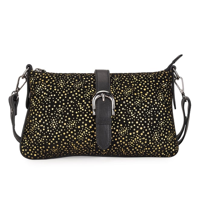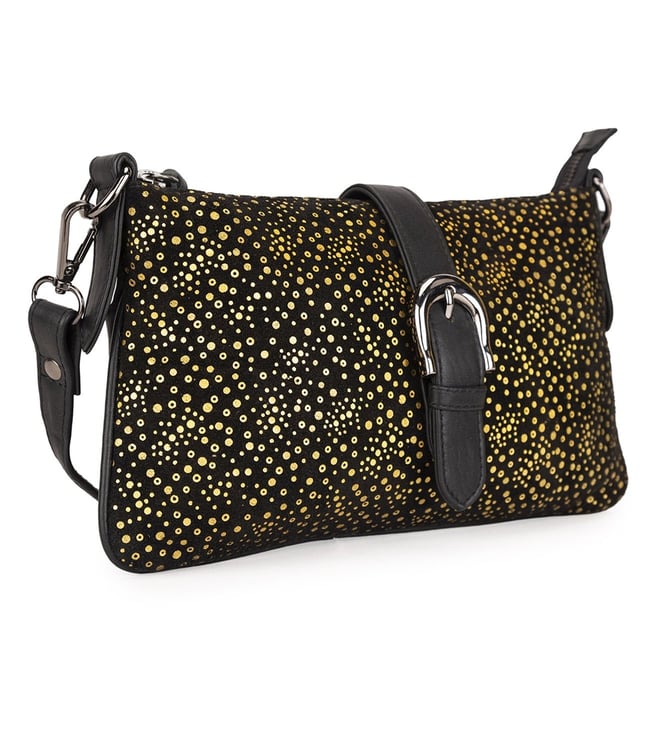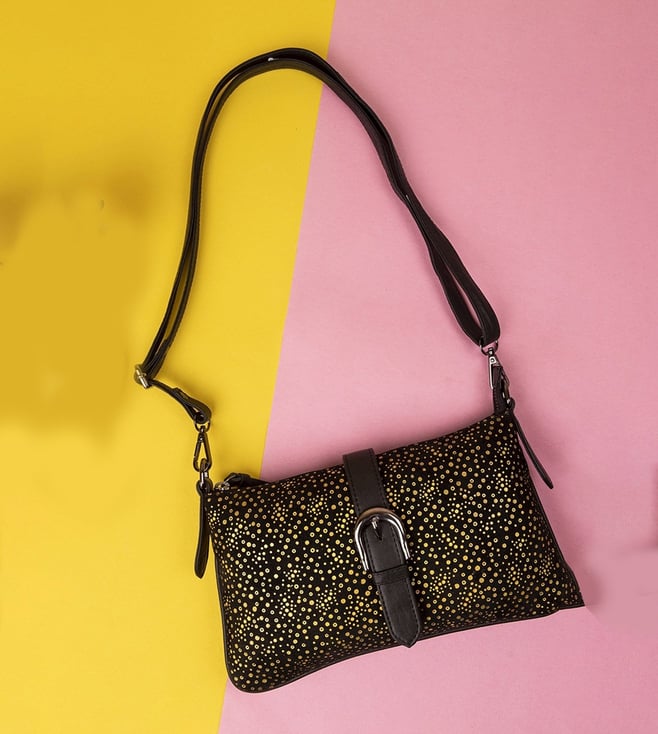 Black & Gold Cassandra Leather Shoulder Bag