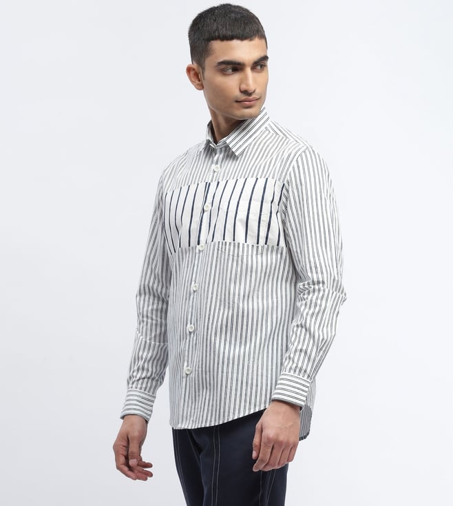 Abraham & Thakore Ivory Off-Grid Engineered Block Print Shirt