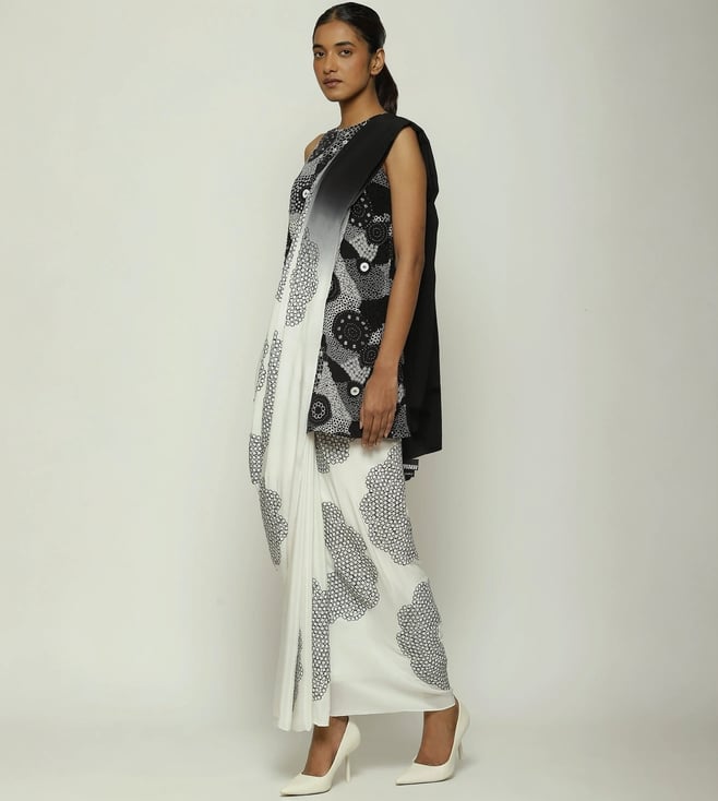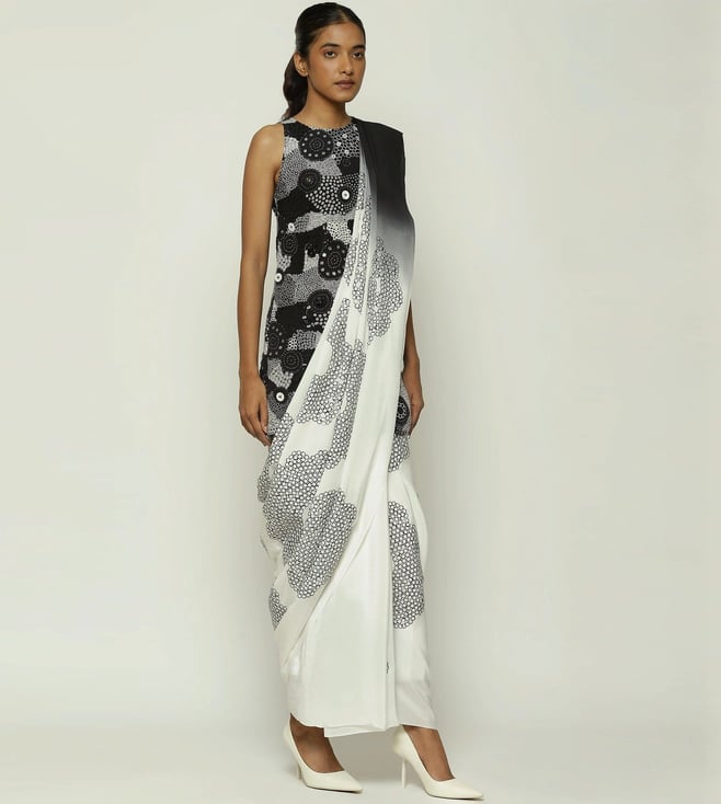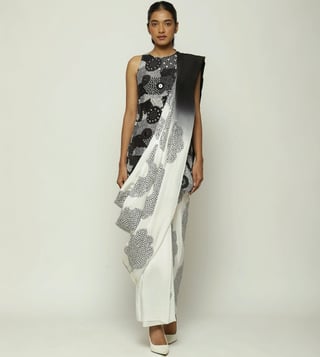 Immerse yourself in luxury with the Abraham & Thakore Saree. This exquisite saree is crafted from premium fabrics, showcasing intricate patterns and sophisticated design. Perfect for any occasion, it seamlessly blends traditional elegance with modern flair. The timeless style and superior craftsmanship of Abraham & Thakore are evident in every detail, making this saree a stunning addition to any wardrobe. Elevate your ensemble with this elegant piece, ideal for making a memorable impression.