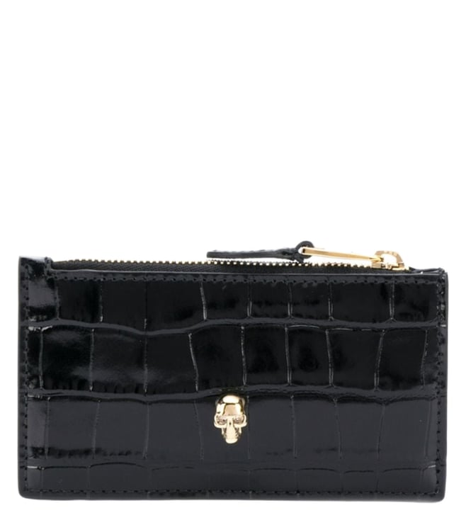 Black Skull Flat Zip Card Holder
