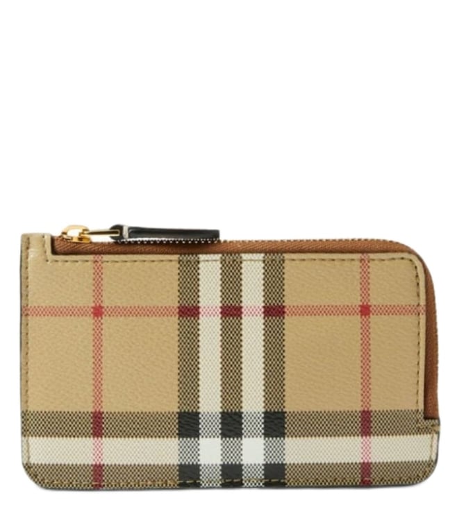 Beige Vintage Check Print Zipped Card Holder
