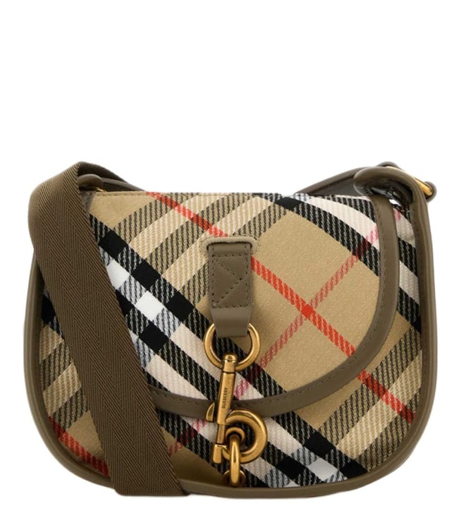 Beige Check Pattern Mini Shoulder Bag
