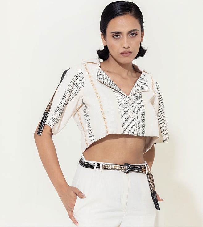 Off White & Multicolor Yaadein Linen Jacket