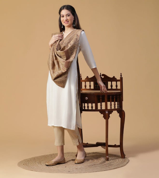 Siya Creamy Woven Design Opulence Wool Stole