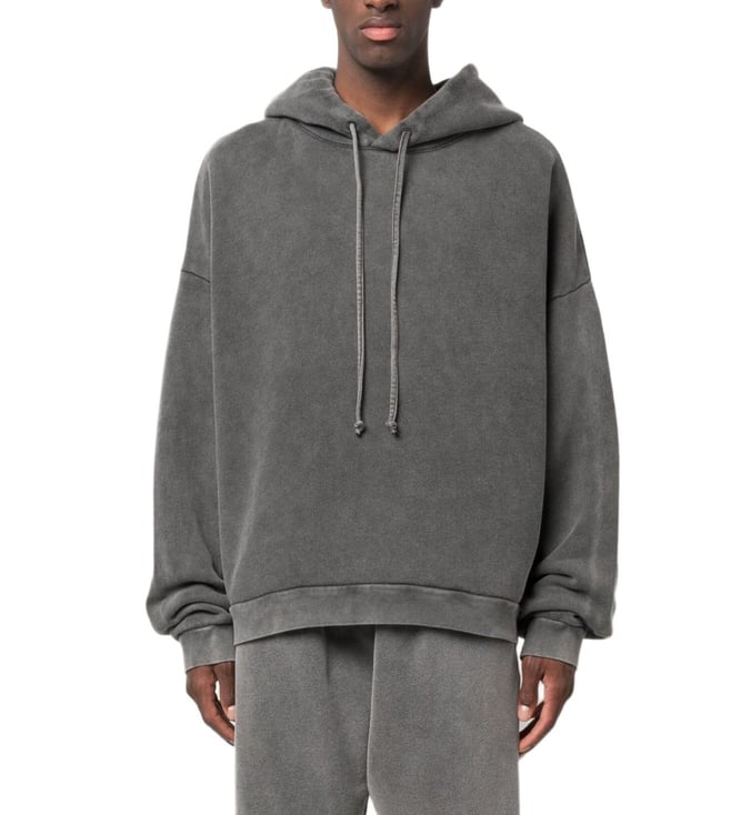 Elevate your style with the Acne Studios Grey Regular Fit Hoodie. Hoodie, long sleeves, drawstring, logo, pullover. this piece fits true to size. recommend you get your regular size model is 1,84m / 6ft 1in wearing size m.