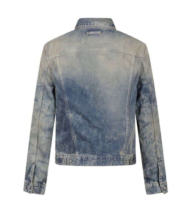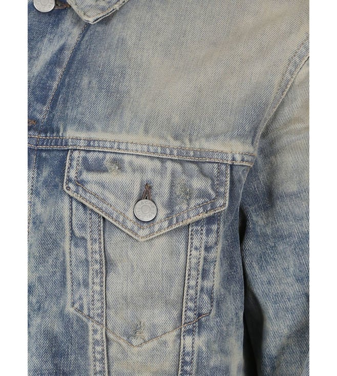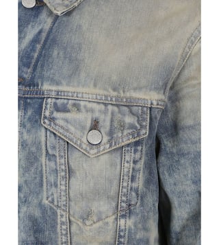 Blue, distressed effect, button fastening, chest pockets, long sleeves.