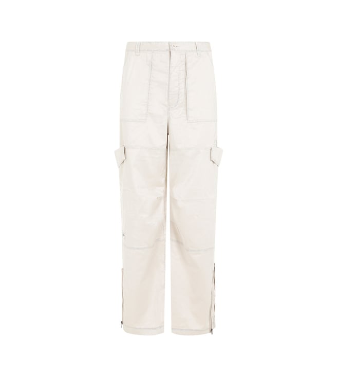Off White Wide Leg Polyester Relaxed Fit Pants