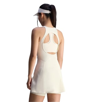 Make an instant impression on the onlookers as you step out wearing this beige tight fit sleeveless dress from adidas. Tailored to sartorial perfection from premium quality fabric, it assures a soft and soothing touch against the skin. The round neck adds to its appeal.