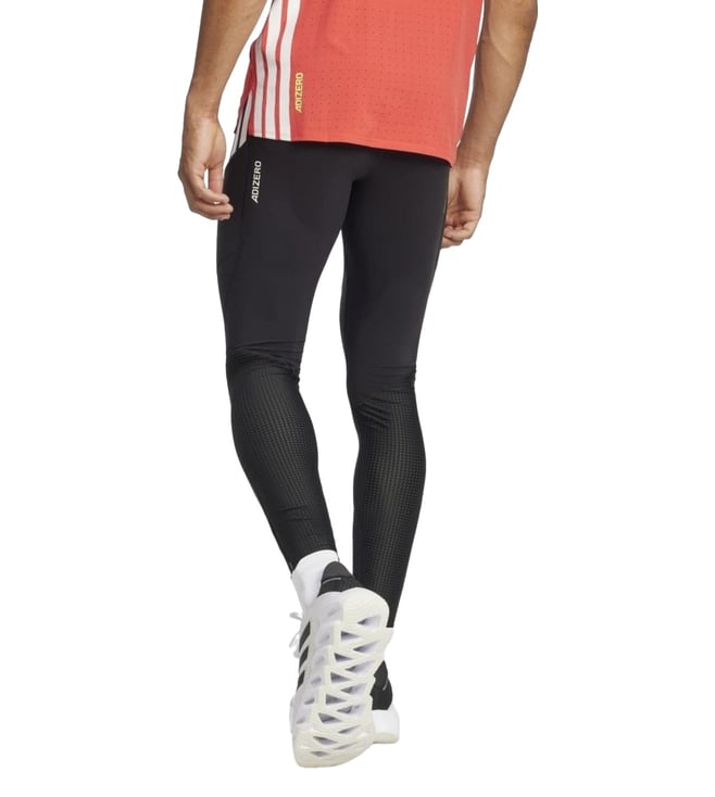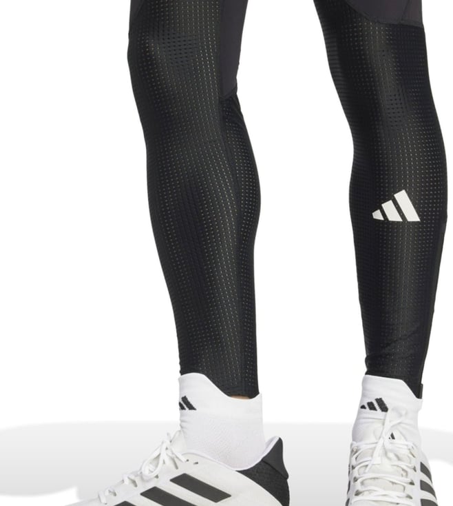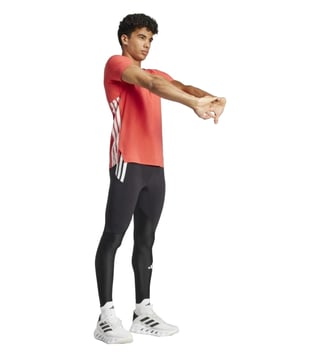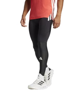 Get ready to be overwhelmed with a flurry of compliments by wearing this pair of black fitted sports tights from Adidas. Tailored to sartorial perfection from premium quality fabric, it assures a soft and soothing touch against the skin.