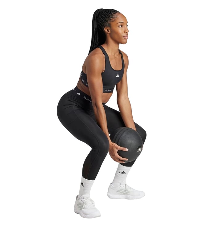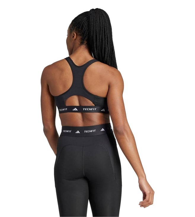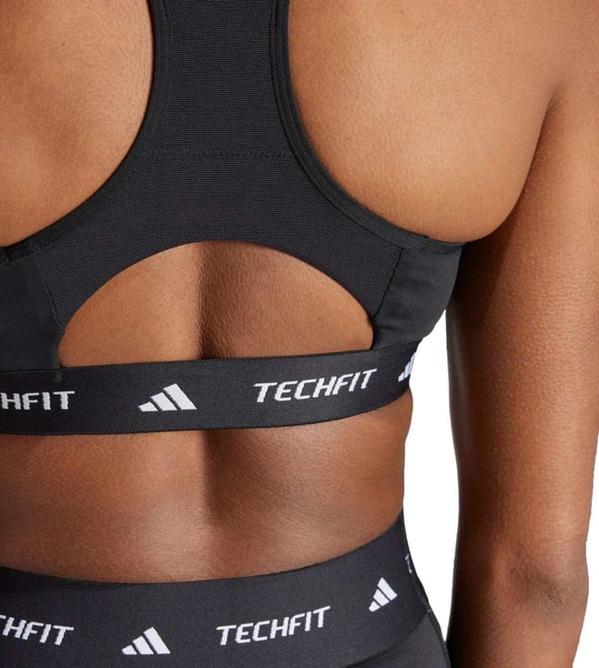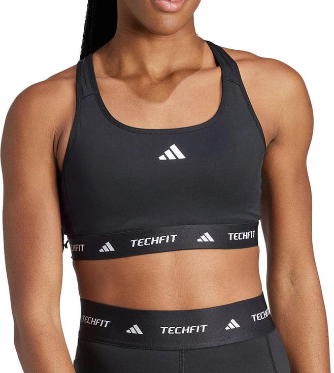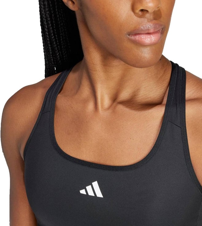 Give your wardrobe a fashionable spin with this black tight fit sleeveless sports bra from adidas. Tailored to sartorial perfection from premium quality fabric, it assures a soft and soothing touch against the skin. The scoop neck boasts of exclusive appeal.
