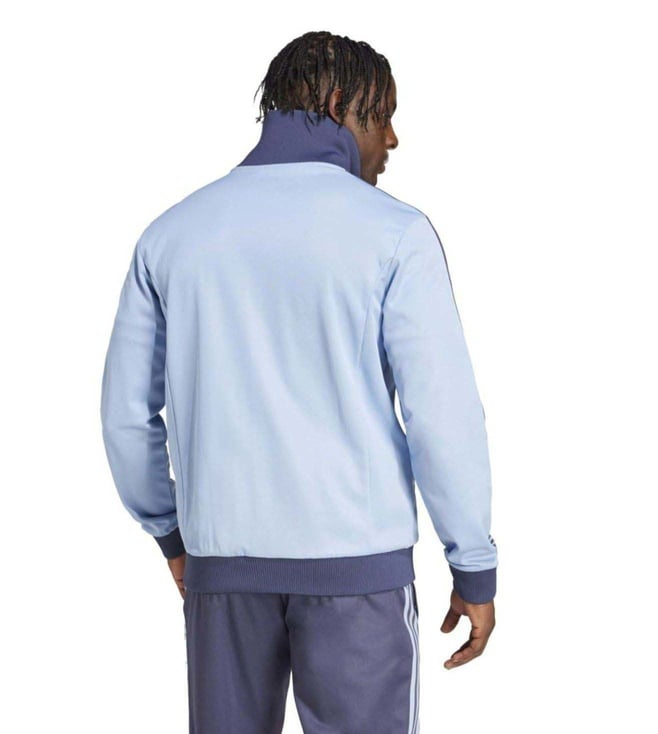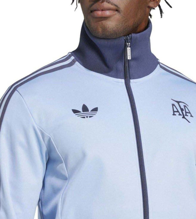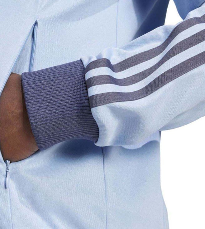 Give your wardrobe a stylish lift with this blue high neck slim fit sports jacket from Adidas. Tailored to sartorial perfection from premium quality fabric, it assures a soft and soothing touch against the skin. Exuding full sleeves, it is sure to fetch you compliments from all. It emanates a striped pattern which makes it a unique choice.