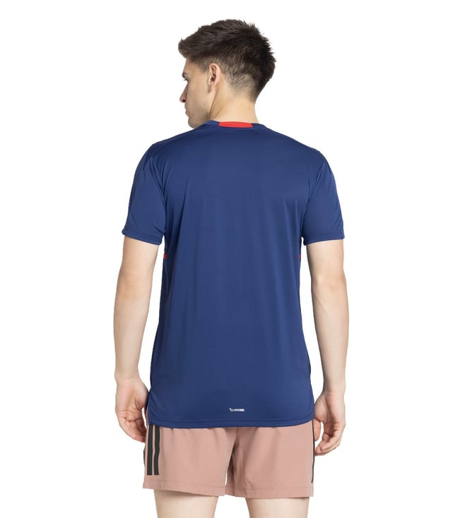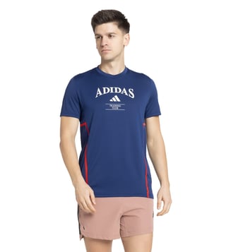 Elevate your athletic style with the ADIDAS Blue D4T LEGACY Printed Slim Fit Tee. This versatile tee combines performance and style with a slim fit design that flatters your physique while allowing for full range of motion. The bold blue color and eye-catching legacy print make a statement wherever you go. Crafted from high-quality materials, this tee is perfect for workouts or casual wear. Stay comfortable and confident in this must-have addition to your activewear collection.
