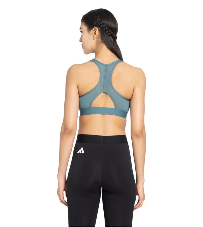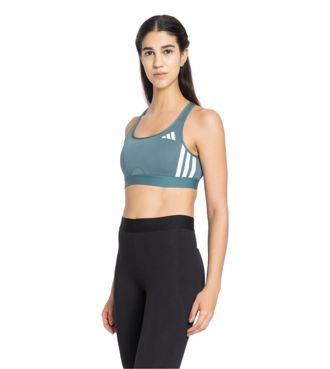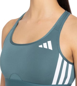 Get ready to be overwhelmed with a flurry of compliments by wearing this green tight fit sleeveless sports bra from adidas. Tailored to sartorial perfection from premium quality fabric, it assures a soft and soothing touch against the skin. The scoop neck boasts of exclusive appeal.