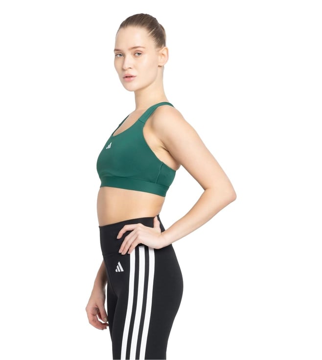 Push through intense workouts in this adidas high-support bra. AEROREADY wicks moisture, while adjustable straps and pads ensure a secure fit. Made with at least 70% recycled materials, it reduces waste. Perfect for boxing or soccer, pair with leggings for a sustainable, active look