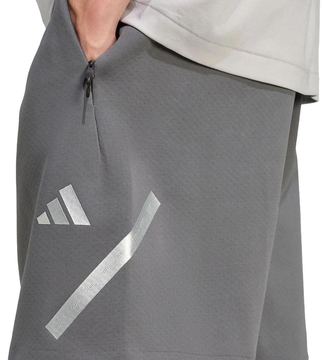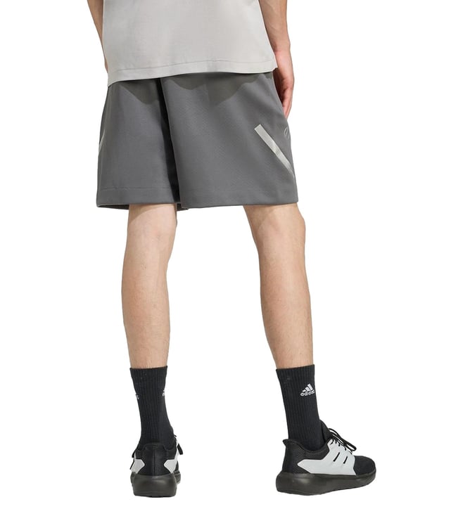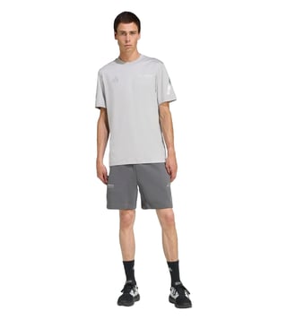 Hit the roads in style by wearing this pair of grey regular fit sports shorts from adidas. Tailored to sartorial perfection from premium quality fabric, it assures a soft and soothing touch against the skin. The printed pattern makes it a captivating choice.