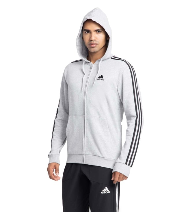 ADIDAS Grey Stripes Regular Fit Hoodie