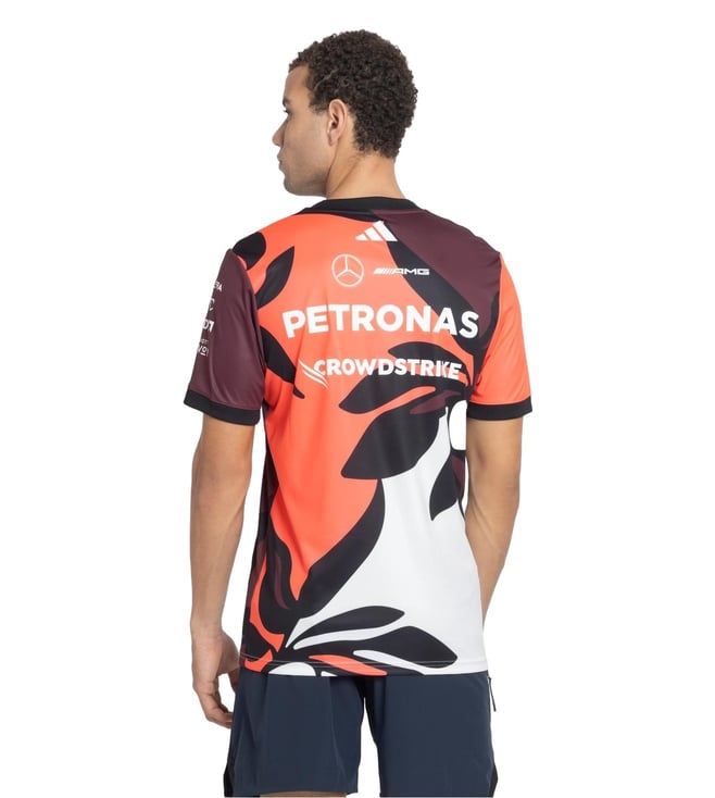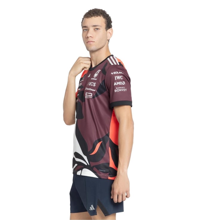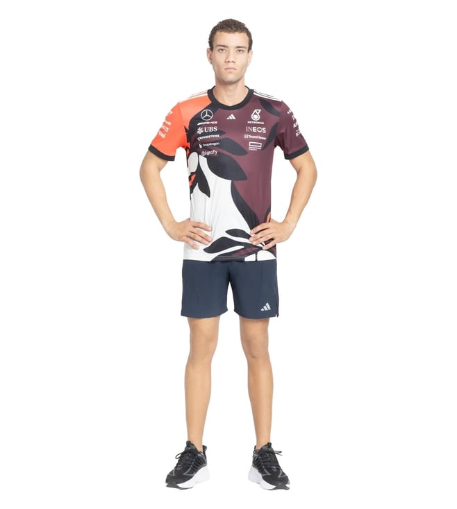 Look your best by wearing this multicoloured regular fit jersey from adidas. Tailored to sartorial perfection from premium quality fabric, it assures a soft and soothing touch against the skin. The round neck adds to its appeal. Exuding short sleeves, it is sure to fetch you compliments from all. The printed pattern makes it a captivating choice.