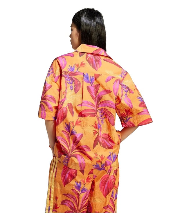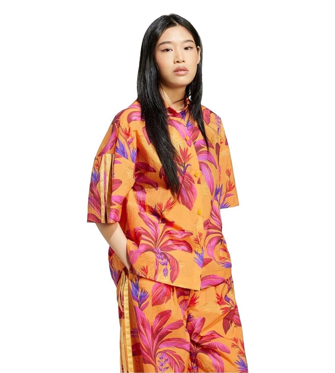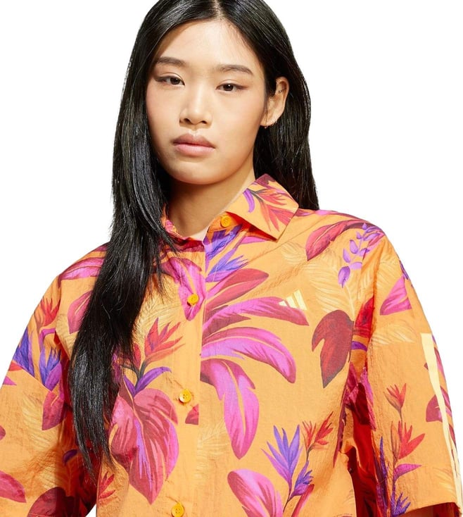 Fascinate everyone with your exquisite choice by donning this orange loose fit shirt from adidas, that will add a dash of extra charm to your look. Tailored to sartorial perfection from premium quality fabric, it assures a soft and soothing touch against the skin. The shirt collar adds to its appeal. Exuding short sleeves, it is sure to fetch you compliments from all. The printed pattern makes it a captivating choice.