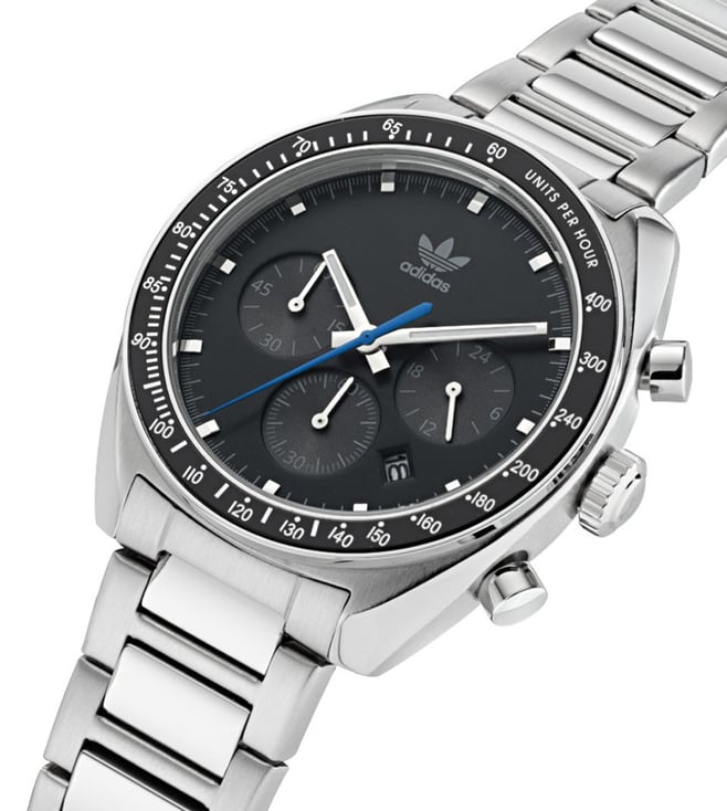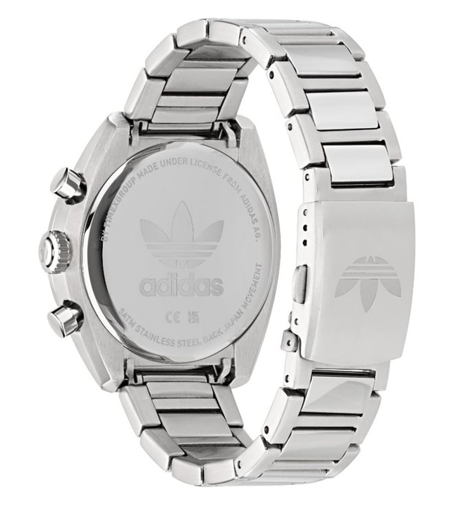 This unisex's analog watch from ADIDAS ORIGINALS is an exquisite timepiece that has a classic style with a contemporary touch. The black round dial is protected by a mineral glass. It has a crown for time adjustment. The stainless steel strap comes in a silver hue that further elevates the look of the timekeeper. Besides, it is completed with a fold-over clasp to ensure a secure fit on the wrist.
