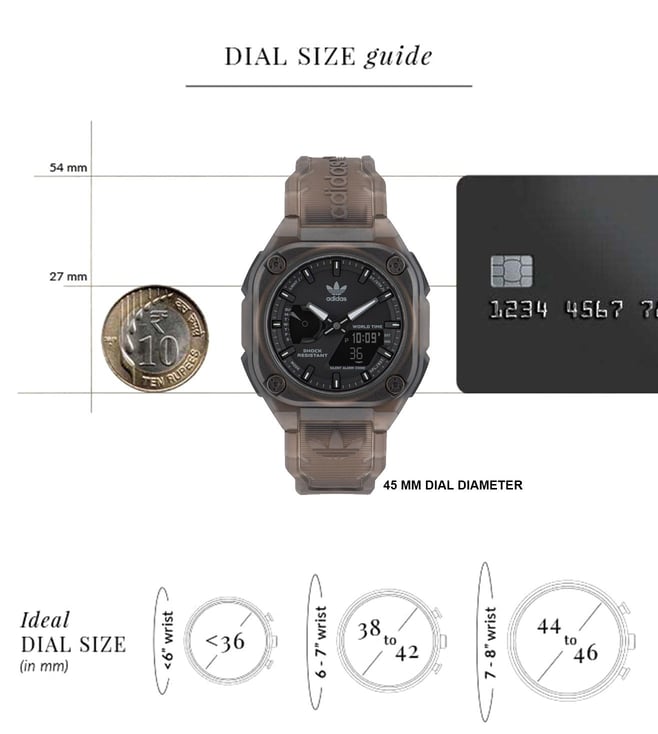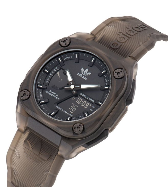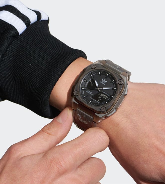An apt inclusion to keep yourself updated, this unisex's analog-digital watch from ADIDAS ORIGINALS is sure to elevate your look. The black octagon dial is protected by a mineral glass. It has a crown for time adjustment. The resin strap comes in a grey hue that further elevates the look of the timekeeper. Besides, it is completed with a pin buckle clasp to ensure a secure fit on the wrist.