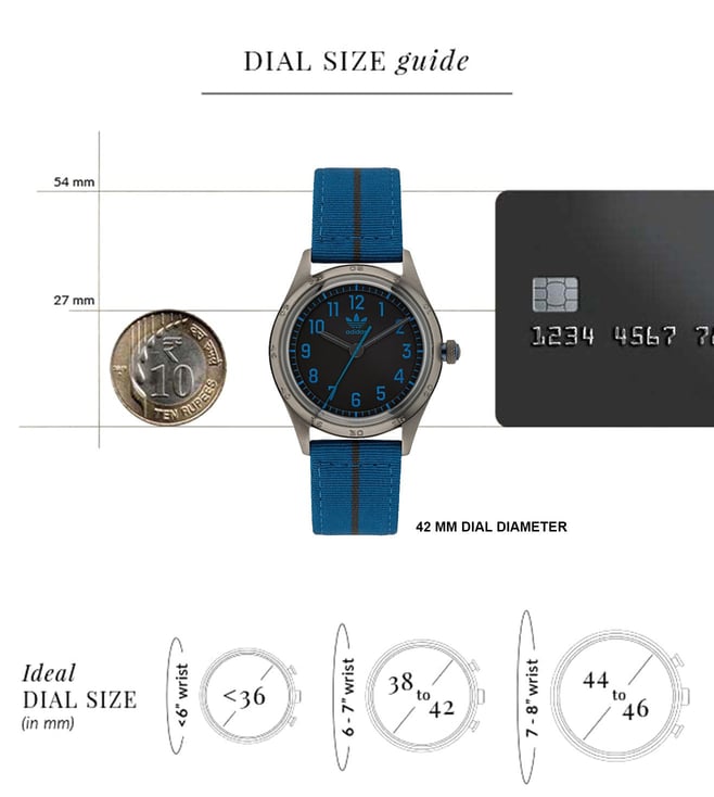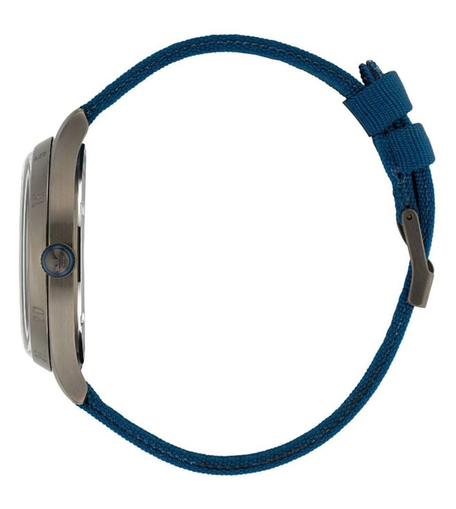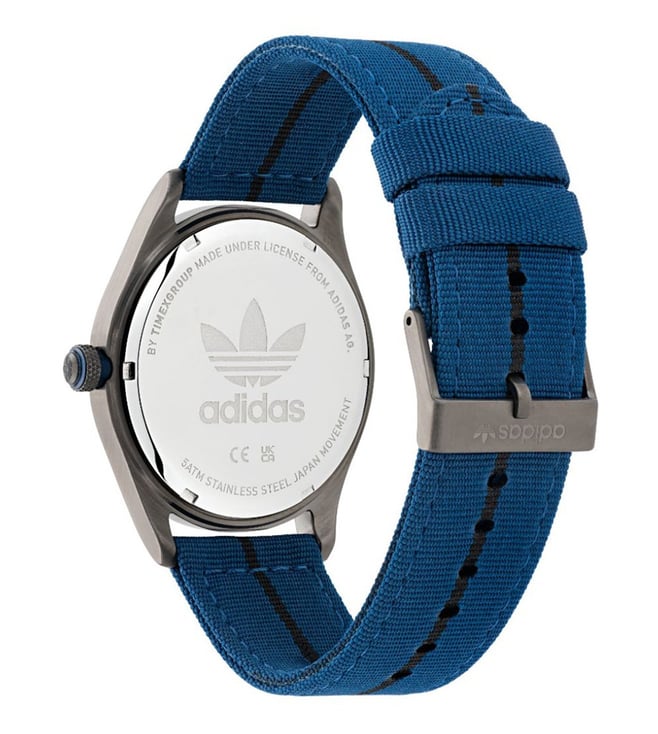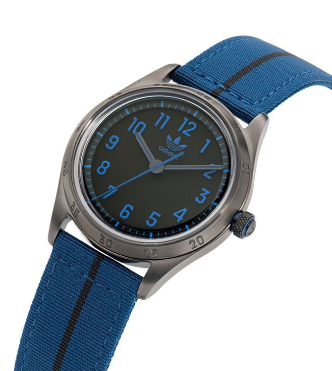 Add a classy touch to your attire by wearing this unisex's analog watch from ADIDAS ORIGINALS. The black round dial is protected by a mineral glass. It has a crown for time adjustment. The stainless steel strap comes in a blue hue that further elevates the look of the timekeeper. Besides, it is completed with a pin buckle clasp to ensure a secure fit on the wrist.