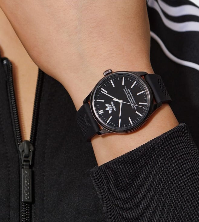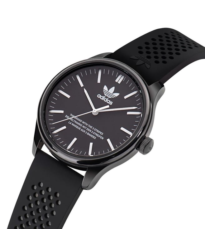 Add a stylish dimension to your look by wearing this unisex's analog watch from ADIDAS ORIGINALS. The black round dial is protected by a mineral glass. It has a crown for time adjustment. The ceramic strap comes in a black hue that further elevates the look of the timekeeper. Besides, it is completed with a pin buckle clasp to ensure a secure fit on the wrist.