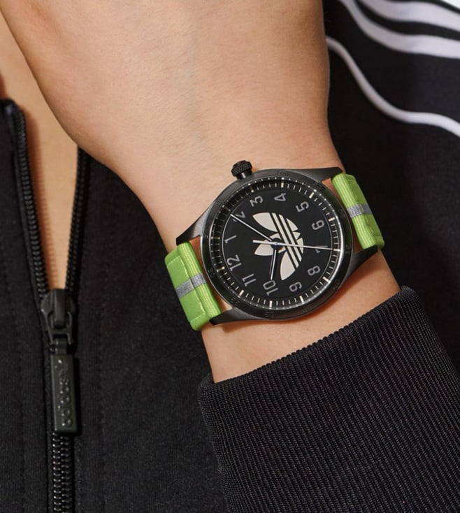 Set in a high shine case, this unisex's analog watch from ADIDAS ORIGINALS is sure to catch your attention. The black round dial is protected by a mineral glass. It has a crown for time adjustment. The stainless steel strap comes in a two tone hue that further elevates the look of the timekeeper. Besides, it is completed with a pin buckle clasp to ensure a secure fit on the wrist.