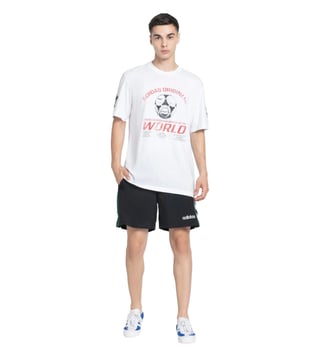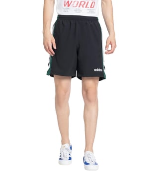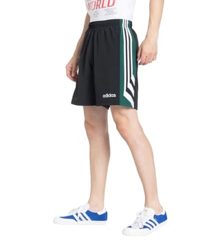 Give your weekend wardrobe a contemporary twist with this pair of black loose fit sports shorts from Adidas Originals. Tailored to sartorial perfection from premium quality fabric, it assures a soft and soothing touch against the skin. It emanates a striped pattern which makes it a unique choice.