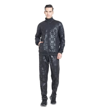 Black Regular Fit Logo Printed Sports Track Top