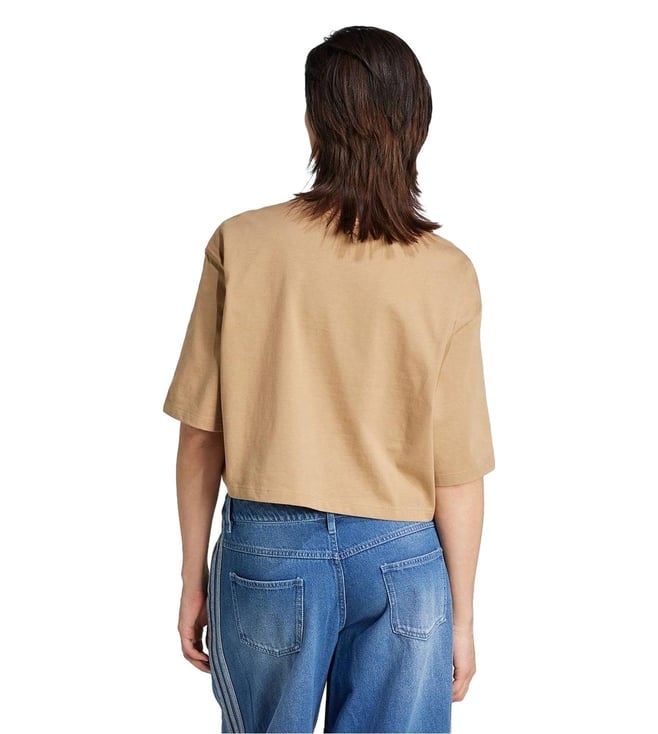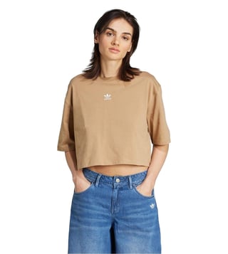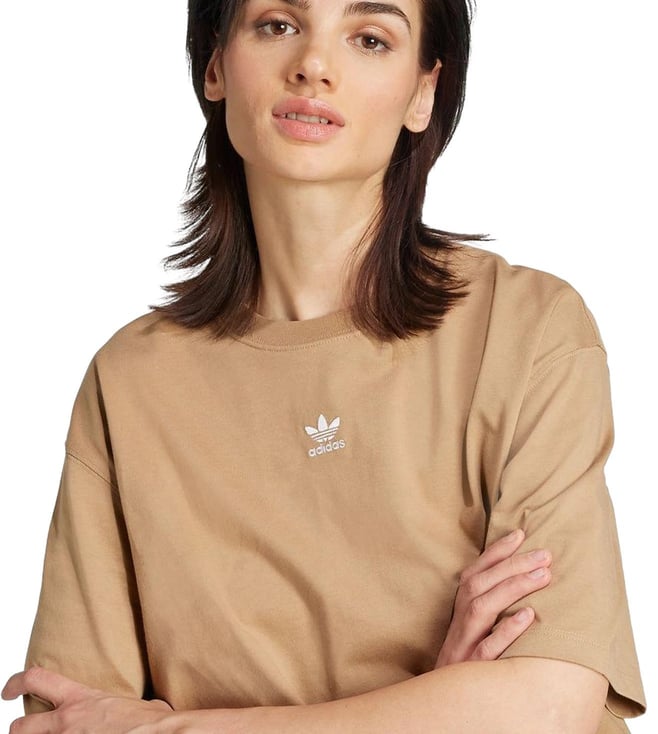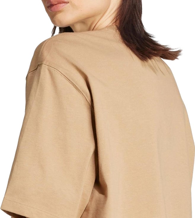 Get appreciated for your style with this exclusive brown oversized sports t-shirt from Adidas Originals. Tailored to sartorial perfection from premium quality fabric, it assures a soft and soothing touch against the skin. The round neck adds to its appeal. Exuding short sleeves, it is sure to fetch you compliments from all.