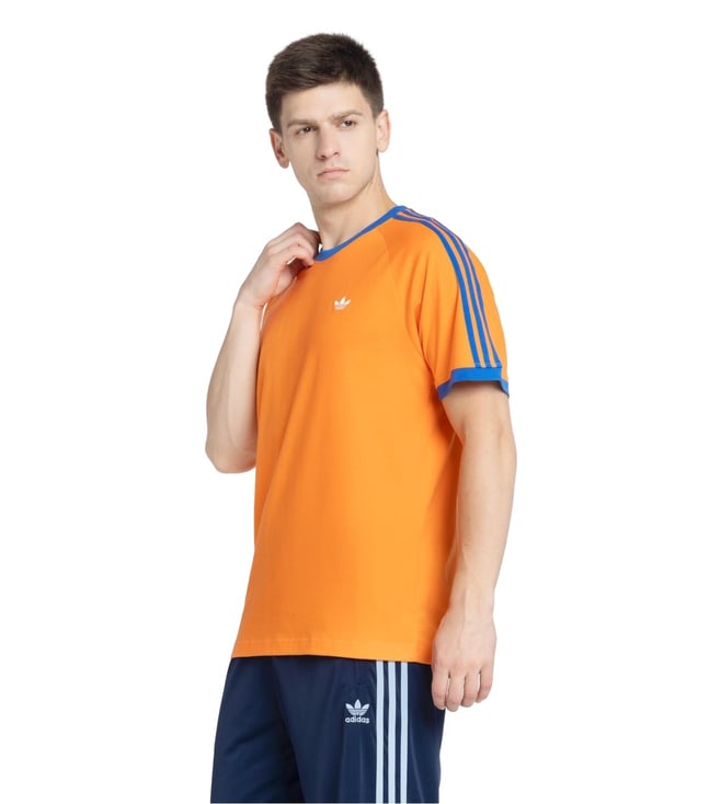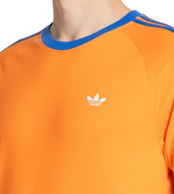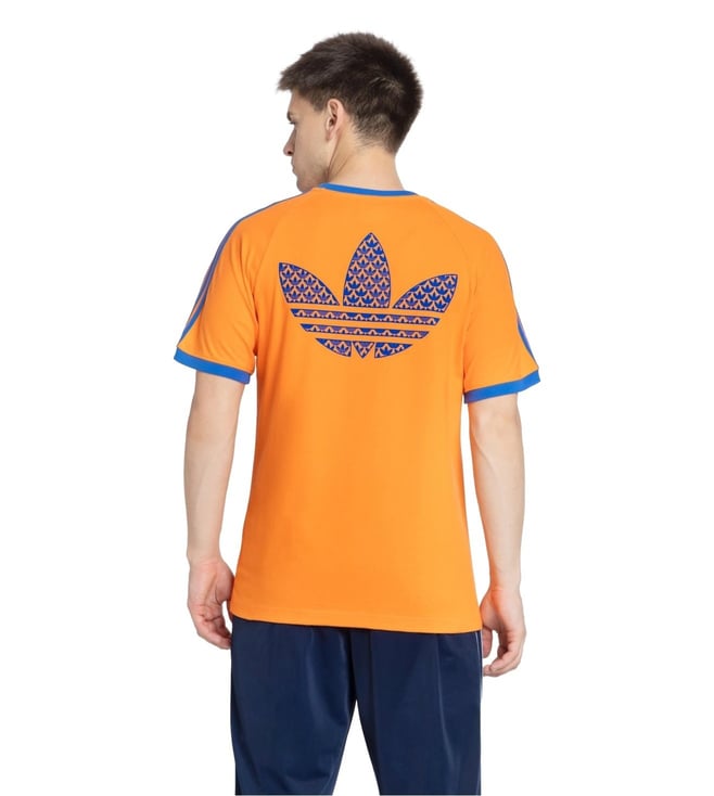 Stand out with ADIDAS ORIGINALS Men's Orange Q2 MONOGRAM CAL T-Shirt. A slim fit, ribbed cuffs, and oversized Trefoil monogram print add bold style, while soft fabric ensures comfort. Made with recycled materials, it¿s sustainable and vibrant. Pair with joggers or jeans