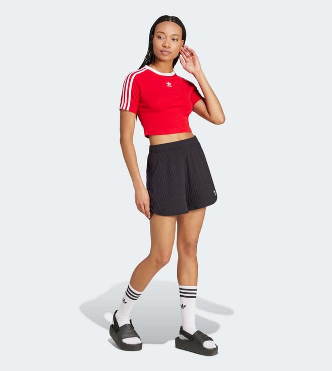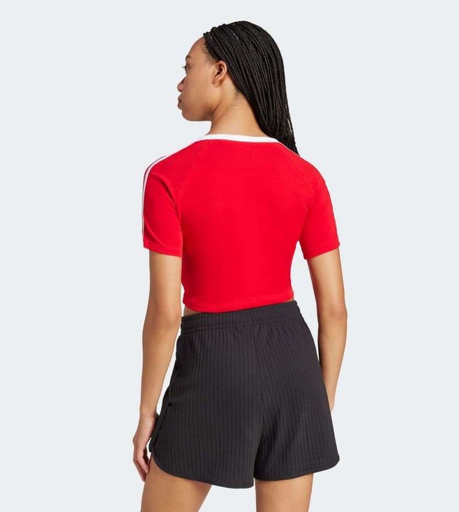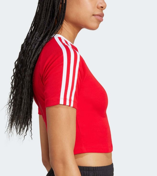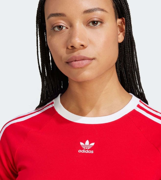 ADIDAS ORIGINALS Red Cotton Slim Fit Striped T-Shirt